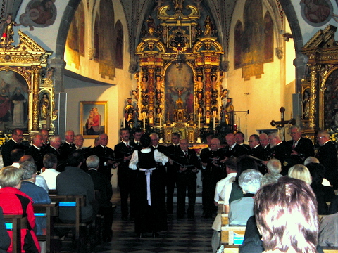 Dies liesen wir uns nicht entgehen. So fanden wir sehr nette Aufnahme im Hotel Pippo in Terzolas / Val di Sole nordwestlich von Trient. Natürlich wurde wieder viel gesungen. Wir hatten einen Auftritt in der Pfarrkirche Menzzana bei dem unser Obmann (auf italienisch) unsere Heimatregion vorstellen konnte.