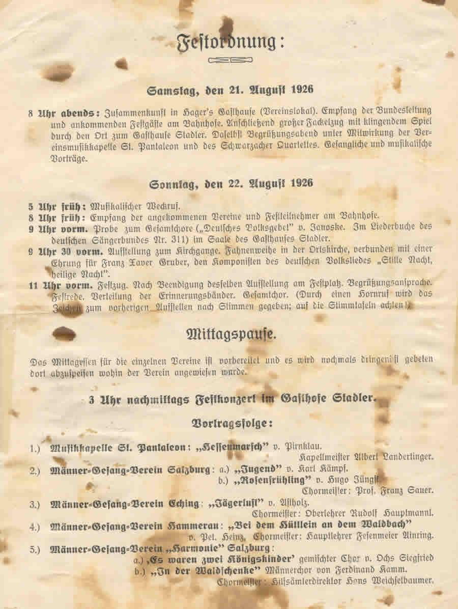 Am 21. und 22. August 1926 richtete der MGV Lamprechtshausen zum 20-jährigen Bestehen ein