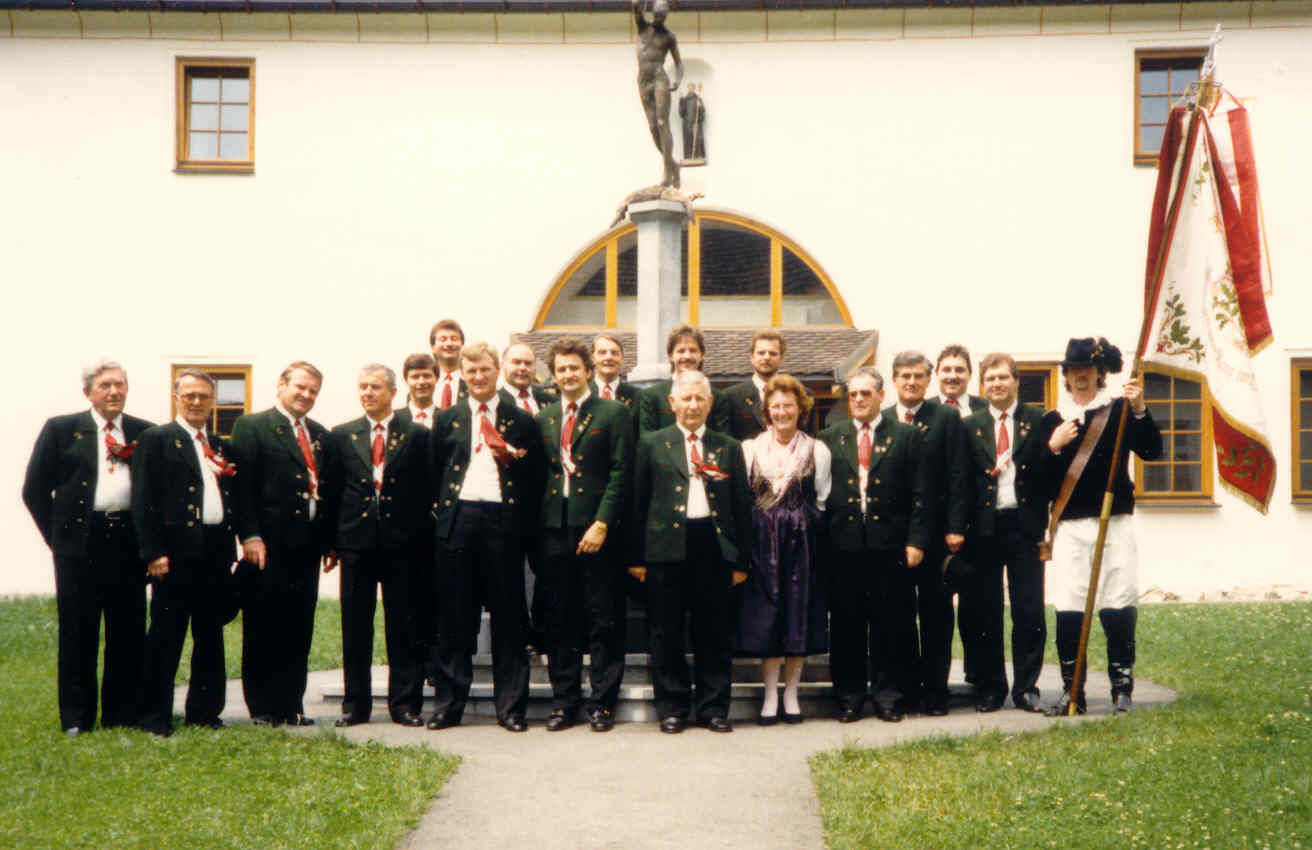 Damals bestand der Chor aus 32 aktiven Sängern und den beiden Marketenderinnen Roswitha Pabinger